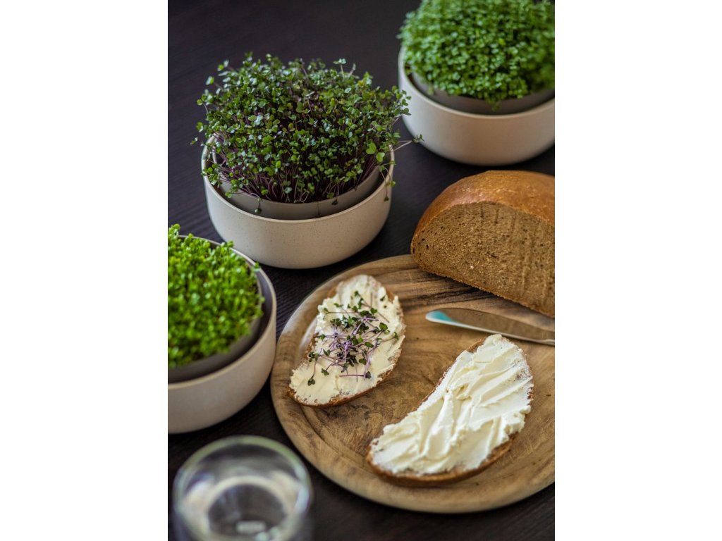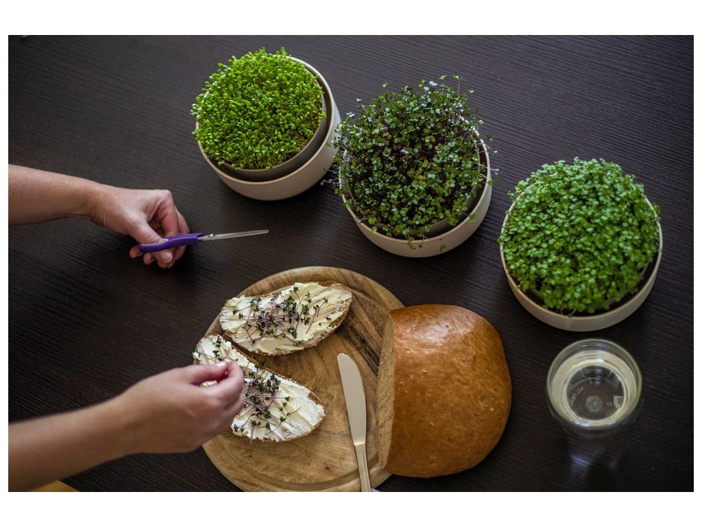 Microgreens sú pripravené na zber už približne za 5–7 dní a môžete ich použiť do šalátov, polievok, sendvičov, smoothie alebo ako dekoráciu jedál. Výhonky sú prirodzeným zdrojom vitamínov, minerálov a antioxidantov.