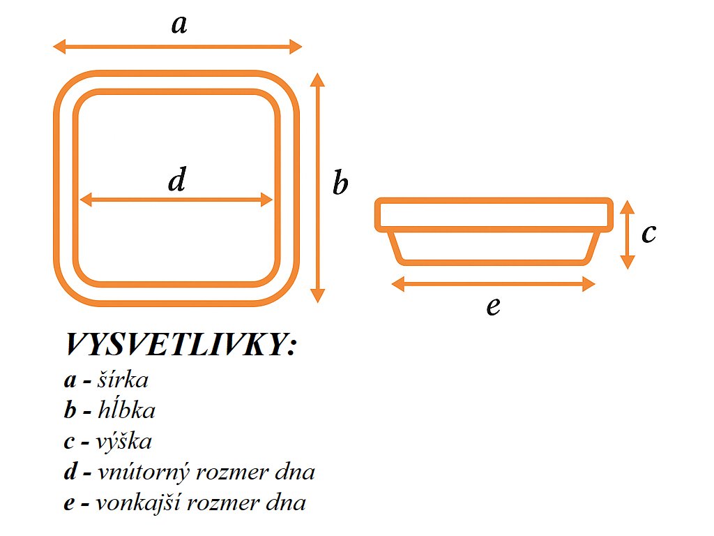 | Veľkosť (cm) | Šírka (cm) | Výška (cm) | Vnútorný rozmer dna (cm) | Vonkajší rozmer dna (cm) |